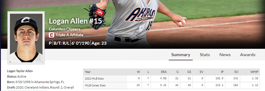 En el reciente ranking publicado, Logan Allen se encuentra en el puesto 6 entre los mejores prospectos lanzadore béisbol de MLB.