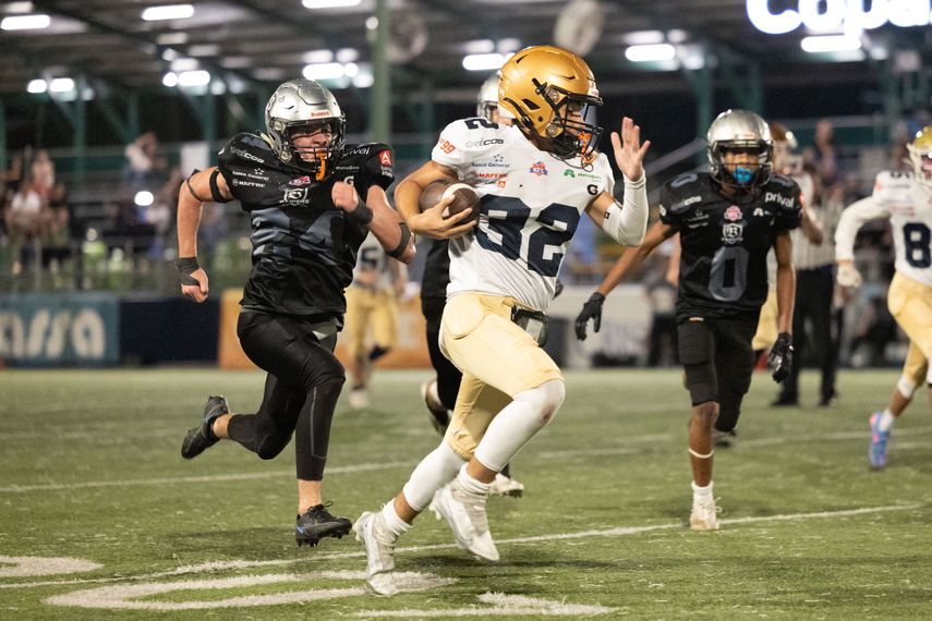 El quarterback Nicolás Paz Rodríguez de los Raiders fue derribado por el defensivo Alejandro Parra y un pase al receptor Miguel González Silgado.